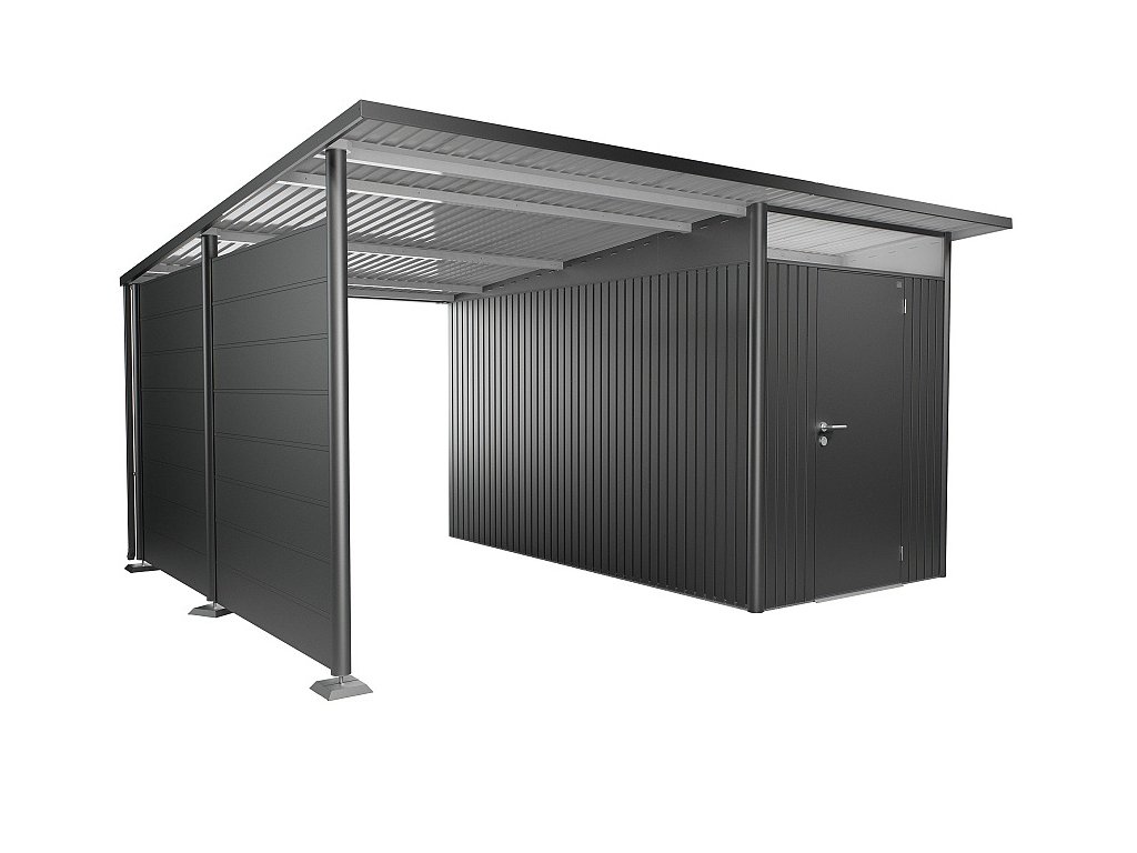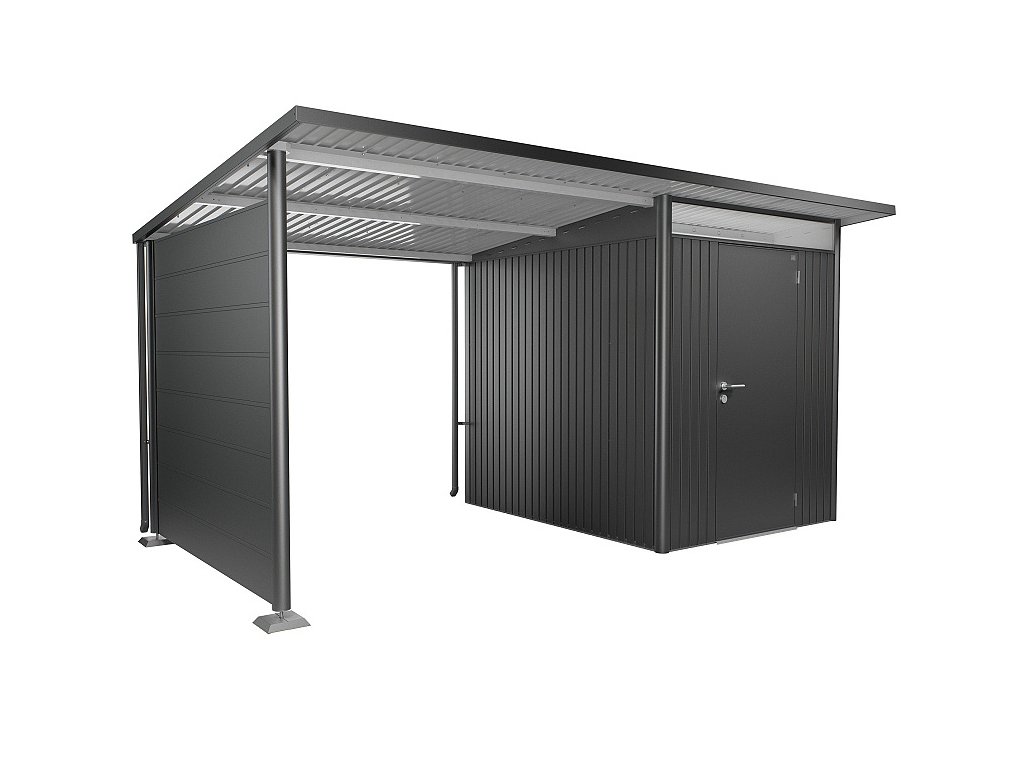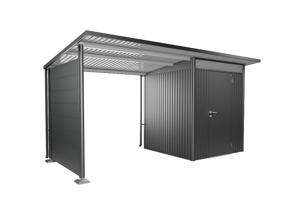 Boční stěna pro postranní střechu zahradního domku Biohort AvantGarde/AvantGarde ECO částečně uzavře prostor pod postranní střechou a vytvoří dodatečný prostor pro ukládání věcí. Boční stěnu lze instalovat i dodatečně bez demontáže nosné konstrukce domku nebo postranní střechy.