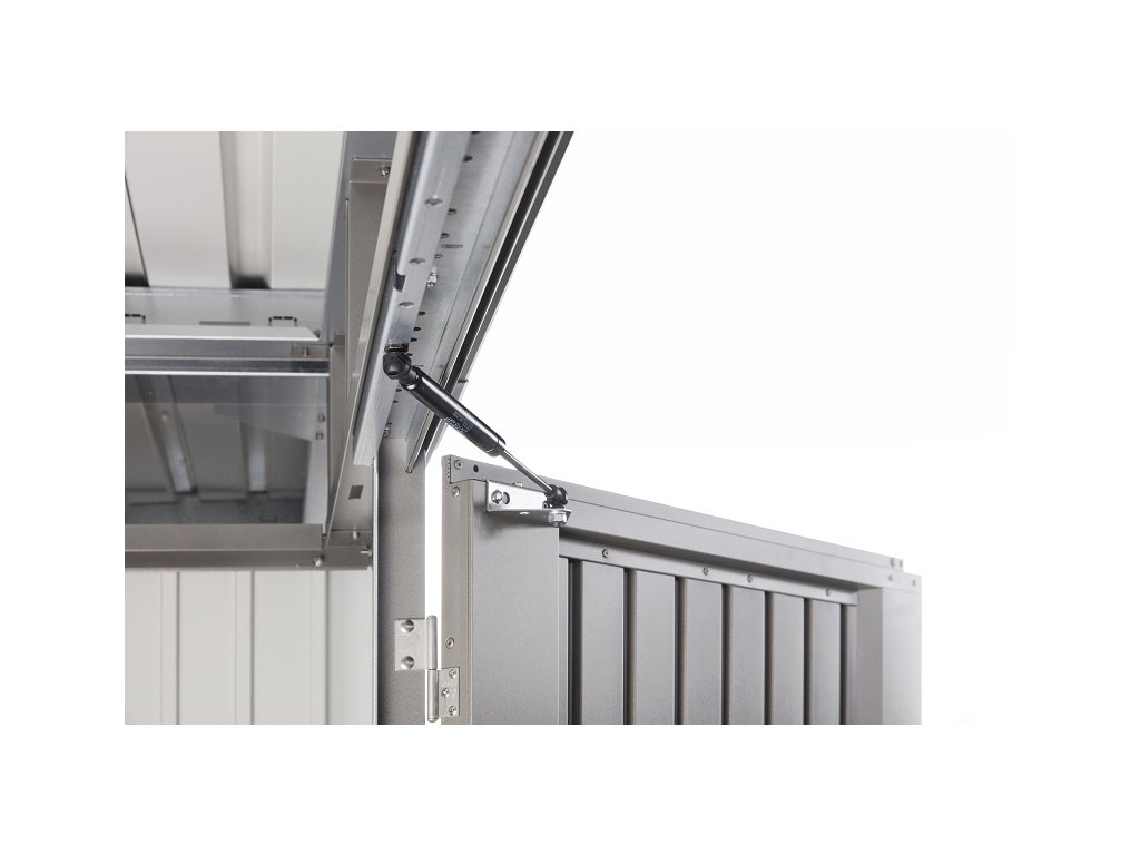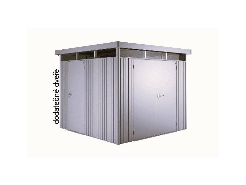 Dodatečné jednokřídlé dveře jsou určené jako pomocné další dveře pro zahradní domek Biohort HighLine. Bytelné dveře s pravým dorazem (panty vpravo) mají kvalitní cylindrický zámek a trojnásobnou závoru. Komfortní a plynulé otevírání dveří zajišťuje plynová pružina. Na vnitřní straně dveří jsou předvrtané otvory pro umístění dveřních košů nebo držáků, určených k zavěšení šroubováků a podobného nářadí.