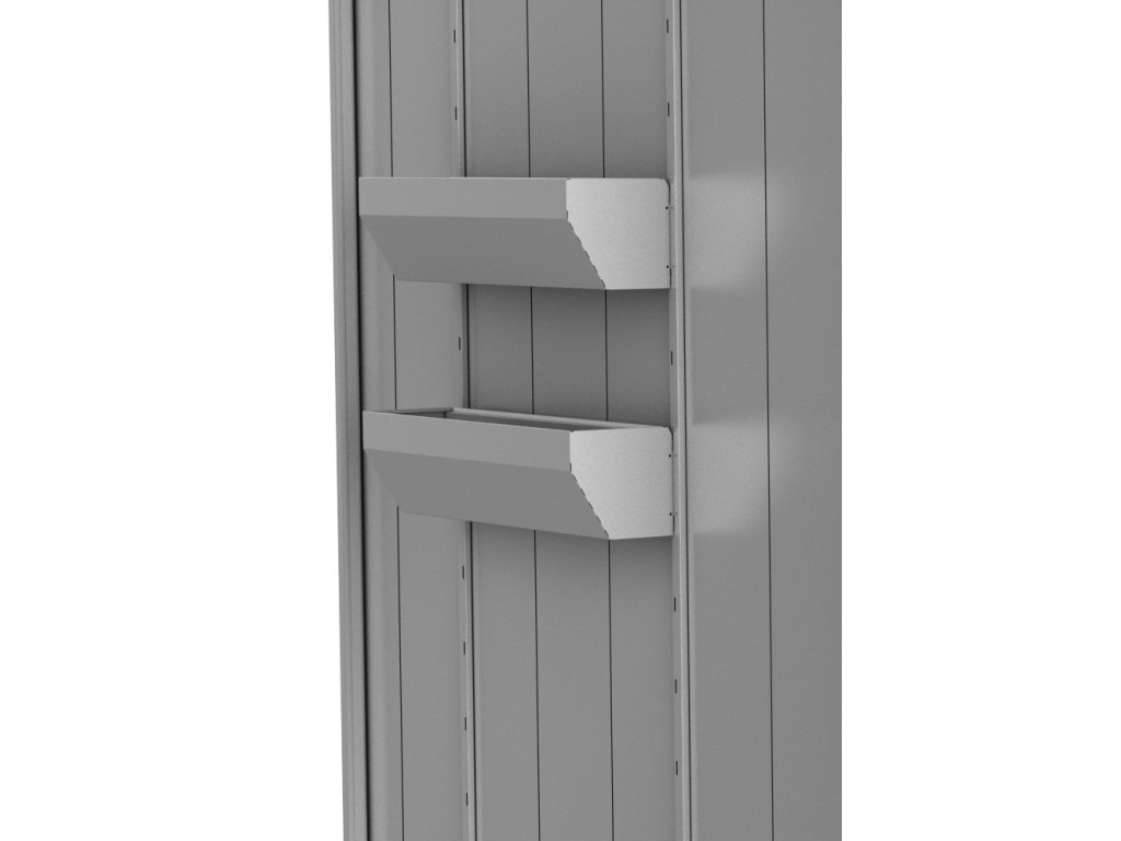 Závěsné truhlíky se instalují zavěšením na stojny připevněné k vnější konstrukci zahradního domku. Výšku zavěšení truhlíků si určujete sami v rámci předvrtaných otvorů ve stojnách.