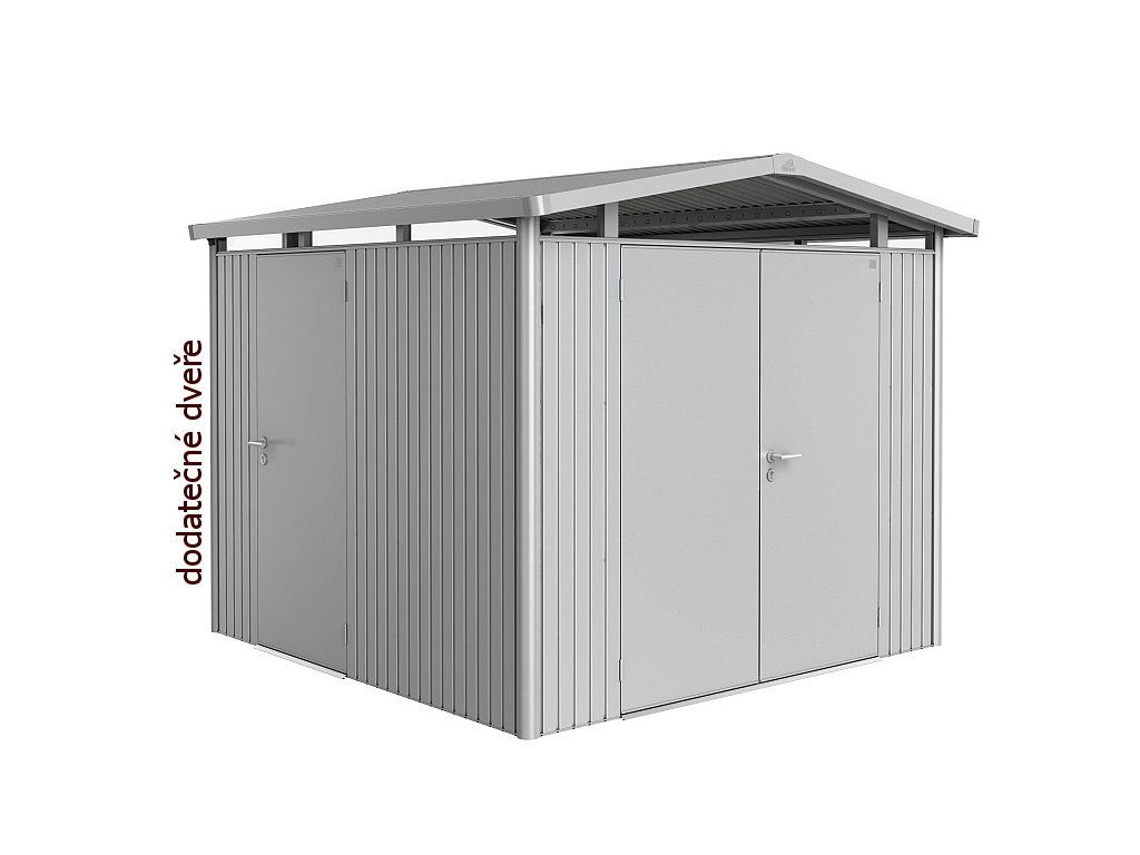 Dodatečné jednokřídlé dveře jsou určené jako pomocné další dveře pro zahradní domek Biohort Panorama. Bytelné dveře s pravým dorazem (panty vpravo) mají kvalitní cylindrický zámek a trojnásobnou závoru. Komfortní a plynulé otevírání dveří zajišťuje plynová pružina. Na vnitřní straně dveří jsou předvrtané otvory pro umístění dveřních košů nebo držáků, určených k zavěšení šroubováků a podobného nářadí.