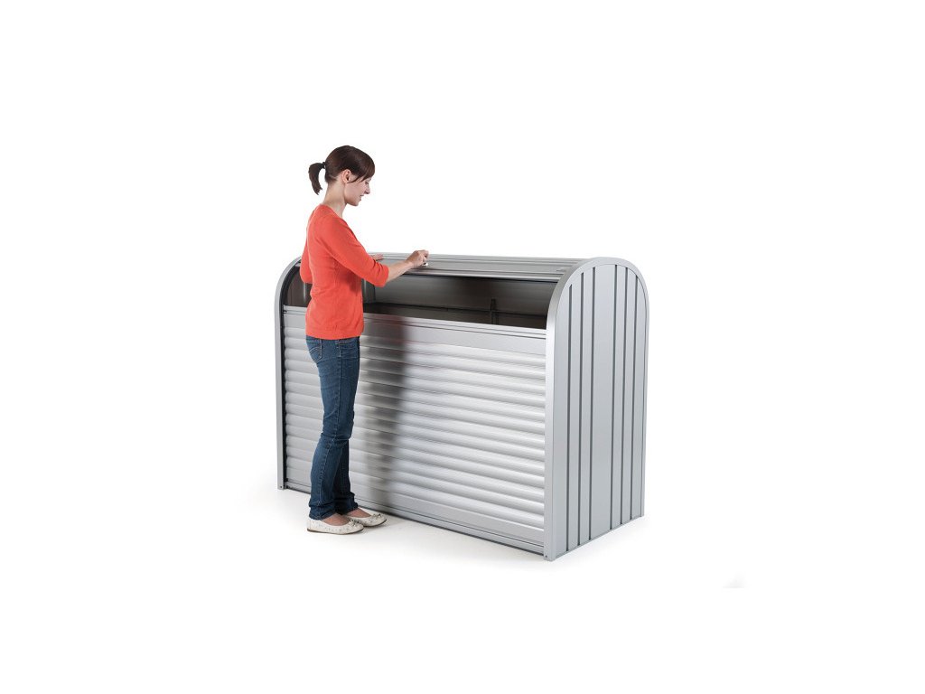 Zahradní úložný box Biohort StoreMax na kočárek, jízdní kolo nebo gril je vyroben z ocelových plechů ošetřených žárovým zinkem a polyamidovým vypalovaným lakem. Otevírání a zavírání boxu za pomocí rolety je jednoduché. Roleta je zajištěna proti náhodným zlodějům dvoucestným uzamykacím mechanismem s integrovaným cylindrickým zámkem v otočné rukojeti. Vnitřní šedo-bílé stěny zvyšují prosvětlení boxu, což oceníte při slabším světle. Integrovaný odvětrávací systém zajišťuje dobrou cirkulaci vzduchu v jakémkoliv ročním období a minimalizuje možnost poškození věcí plísněmi. Má osobní zkušenost s boxem je vynikající a mohu ho doporučit!