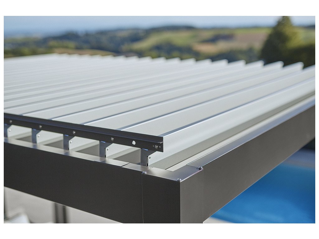 Střešní lamely se skládají z tvrdé pěny PERIPOR, která je známa vynikající tepelnou izolací, potaženou ocelovým plechem ošetřeným pozinkem a polyamidovým vypalovaným lakem. Díky této izolační výplni jsou lamely pevnější, než z méně kvalitního polystyrenu, snižují hlučnost při dešti a maximálně redukují teplotu tvořící se pod lamelami. Naklápění lamel v rozmezí 0°-130°se provádí manuálně. Manuální ovládání střešních lamel je možné pochopitelně elektrifikovat zakoupením elektrického motoru a dálkového ovladače s napájecí jednotkou (obojí je nutné).