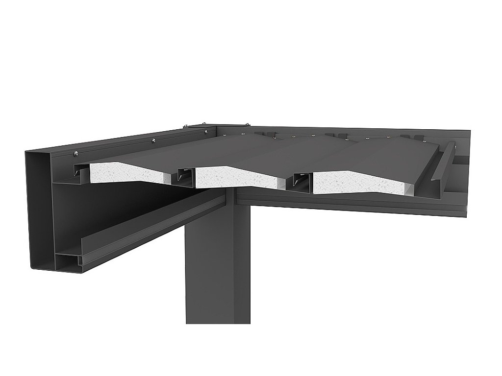- Nosná střešní konstrukce s drážkou pro osvětlení