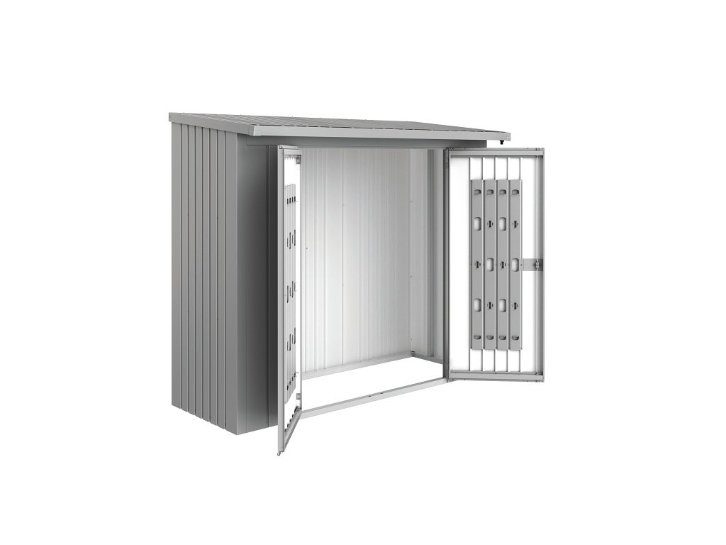 Dodatečnou montáží dveřního setu se uzavře prostor zásobníku z přední strany a vytvoří úložný prostor pro ukládání nářadí, sekačky a jiných věcí. Uzamykatelná rukojeť s cylindrickým zámkem odradí náhodné zloděje nebo ochrání život dětí před nebezpečnými věcmi.