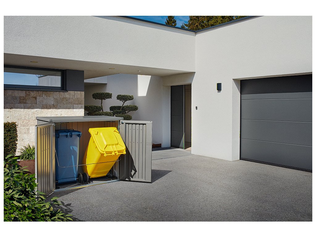 Box Alex je vhodný na uskladnění popelnic, kočárku, grilu nebo s pomocí doplňků z něho vytvoříte skříňku.