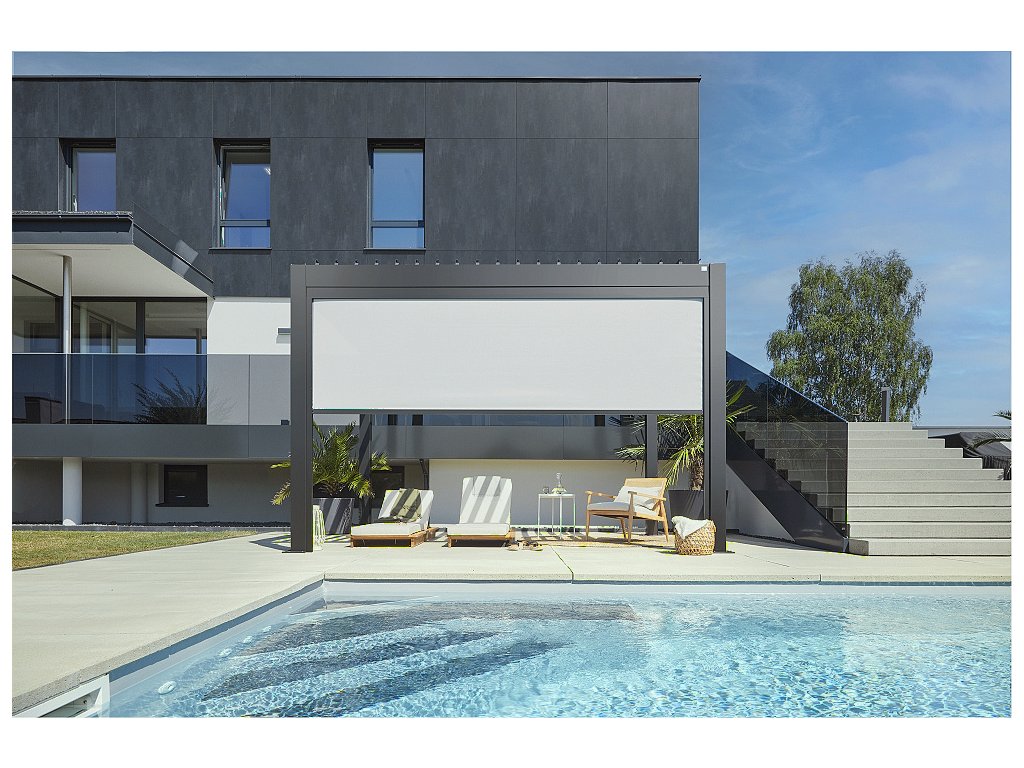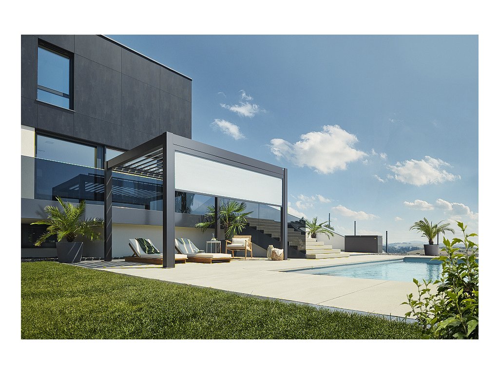 Příplatková doplňková výbava nabízí elektricky ovládané polohovatelné postranní clony do bioklimatické pergoly Biohort. Díky možnosti jejich polohování, docílíte částečného nebo úplného zastínění prostoru před zapadajícím sluncem. Montáž clony není náročná.