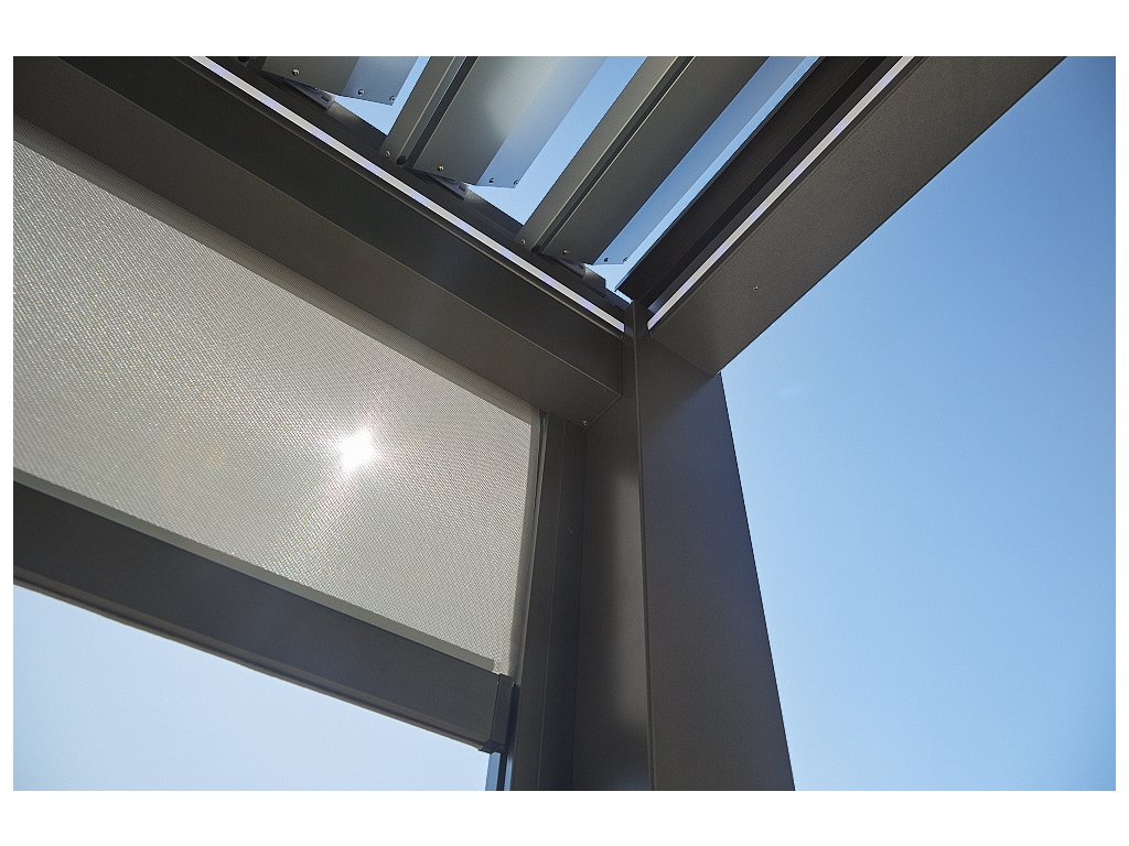Příplatková doplňková výbava nabízí elektricky ovládané polohovatelné postranní clony do bioklimatické pergoly Biohort. Díky možnosti jejich polohování, docílíte částečného nebo úplného zastínění prostoru před zapadajícím sluncem. Montáž clony není náročná.