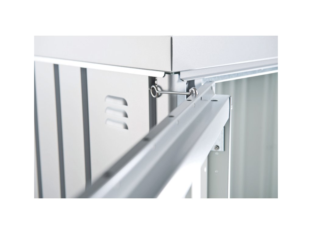 Hluboká zahradní skříň na nářadí Biohort EquipmentLocker LARGE má po celém svém obvodu profilované ocelové plechy ošetřené žárovým zinkem a polyamidovým vypalovaným lakem. Vnitřní šedo-bílé stěny zvyšují prosvětlení skříně, což oceníte při slabším světle. Odvětrávací systém zajišťuje dobrou cirkulaci vzduchu v jakémkoliv ročním období a minimalizuje možnost poškození věcí plísněmi. Jednoplášťové dveře mají dvoucestný uzamykací mechanismus s cylindrickým zámkem zabudovaným v rukojeti ve tvaru T. Skříň nemá vlastní podlahovou desku. Kotvení skříně se provádí do daného podloží přes zpevňovací límec na spodní části stěn nebo s pomocí hliníkového podlahového rámu, který skříň více vyztuží. Podlahový rám není součástí základního vybavení skříně (doporučujeme dokoupit pokud nemáte rovný betonový podklad). Má osobní zkušenost se skříní je vynikající a mohu ji doporučit!