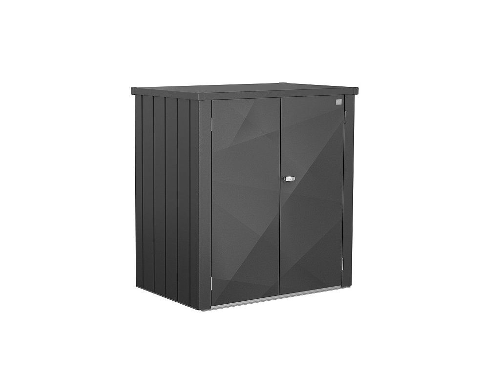 Nízká hluboká zahradní skříňka Biohort ROMEO L-140 má na boční a zadní straně profilované ocelové plechy ošetřené žárovým zinkem a polyamidovým vypalovaným lakem. Moderní design podtrhují hladké dveře s nepravidelně vyraženými linkami. Dvoukřídlé dveře s hlavními panty vpravo mají dvoucestný uzamykací mechanismus s cylindrickým zámkem zabudovaným v rukojeti ve tvaru T. Snadné otevírání dveří zajišťují tlakové plynové pružiny. Na vnitřní straně dvířek jsou ZDARMA umístěné organizéry s háčky pro zavěšení nářadí nebo grilovacího náčiní. ZDARMA také obdržíte police pro odkládání věcí.