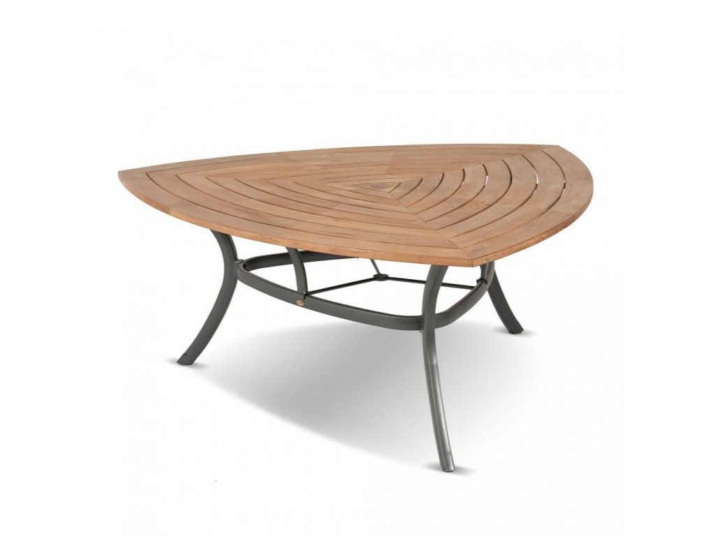 Zahradní stůl Triangular Vás zaujme na první pohled svým tvarem. Teaková deska trojúhelníkového tvaru na hliníkové konstrukci vypadá elegantně. Ke stolu pohodlně posadíte 6 osob a každý má svého místa dost.