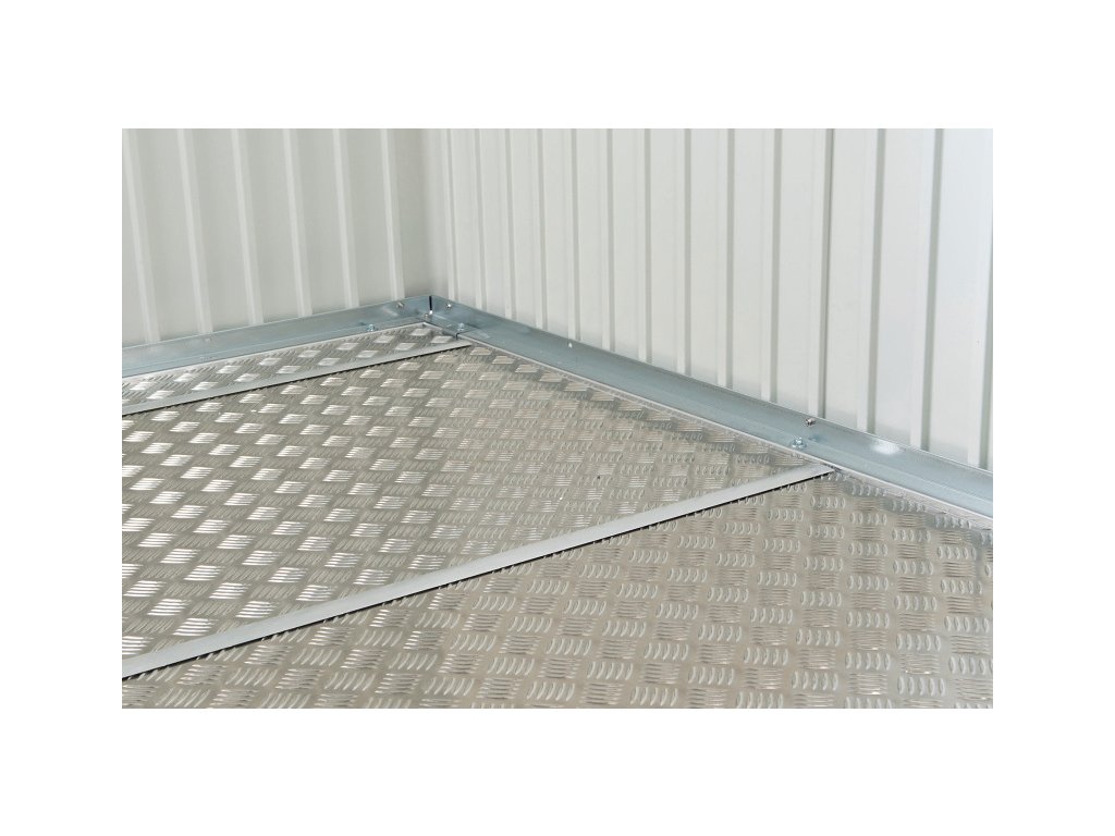 Hliníková podlahová deska pro zahradní domek Biohort AvantGarde není nutná, pokud domek instalujete na opravdu rovné a zpevněné podloží (betonová deska). Podlahová deska je spíše potřeba při umístění domku na zámkovou dlažbu, zhutněný štěrk a podobné povrchy. Výhodou podlahové desky je, že díky svému povrchu působí protiskluzově, snižuje prašnost a redukuje tvorbu vlhkosti. Podlahová deska se instaluje na bázi plovoucí podlahy vložením do podlahového rámu. Podlahovou desku nezapomeňte podložit podlahovým polystyrenem (není součástí balení), který nejenže brání poškození desky, ale zvyšuje také výšku vodního sloupce při náhlém průniku vody do domku. Ideální skladba podlahy je geotextílie, polystyren (tloušťka 3 cm) a hliníková podlahová deska Biohort. V případě nakloněné roviny, svahovitého nebo neupraveného terénu můžete použít základnu s nastavitelnou výškou samonosné podlahy SmartBase nebo SmartBase Plus (žádné další složité úpravy terénu).