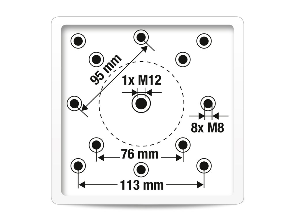 Naše slunečníky Shadowflex, Voyager, Challenger a Icon přesně pasují do námi nabízených podstavců, tzn. že redukce k těmto slunečníkům není potřeba! Redukce pro uchycení slunečníku k podstavci je většinou potřeba pro slunečníky jiných značek (není pravidlem). Pokud slunečníky mají shodné rozměry, může být i rozměrové shodné uchycení mechanismu. Doporučujeme raději vše přeměřit podle kótování redukce. Mechanismus slunečníku se fixuje v otvorech označených M8 s rozpětím 9,5 cm. V případě, že si nevíte rady, pošlete nám mechanismus slunečníku, který budete na podstavec instalovat a my to u nás vyzkoušíme. Mechanismus Vám pochopitelně zašleme zpět, i když se pro náš podstavec nerozhodnete.