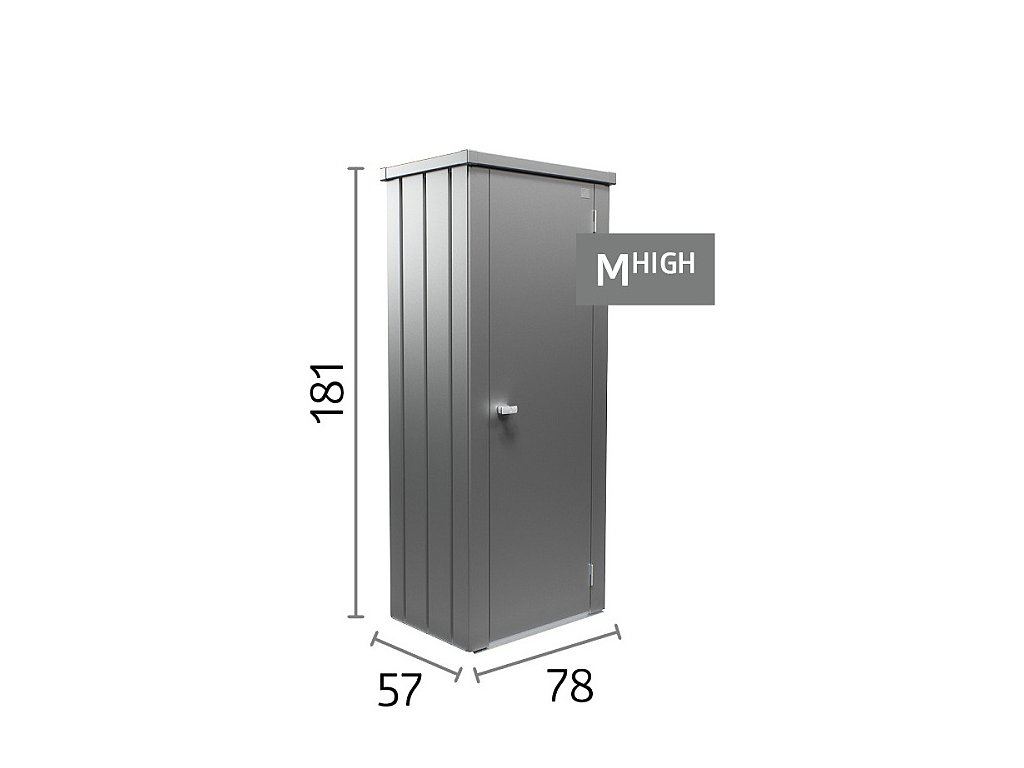 Vysoká mělká zahradní skříň Biohort Julia M má hladké dveřní křídlo a boční stěny z profilovaných ocelových plechů ošetřených žárovým zinkem a polyamidovým vypalovaným lakem. Vnitřní šedo-bílé stěny zvyšují prosvětlení skříně, což oceníte při slabším světle. Odvětrávací systém zajišťuje dobrou cirkulaci vzduchu v jakémkoliv ročním období a minimalizuje možnost poškození věcí plísněmi. Dveřní křídlo je vybavené dvoucestným uzamykacím mechanismem s cylindrickým zámkem zabudovaným v rukojeti ve tvaru T. Snadné otevírání dveřního křídla zajišťuje tlaková plynová pružina umístěná v horní části. Na vnitřní straně dveřního křídla je umístěný organizér pro zavěšení nářadí nebo grilovacího náčiní. Skříň má svoji vlastní podlahu s polystyrenem na spodní straně. Možnost vyrovnat skříň vyrovnávacími otočnými podložkami.