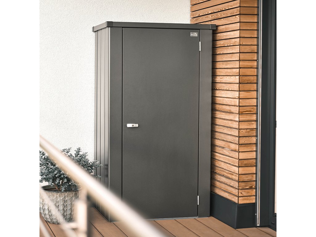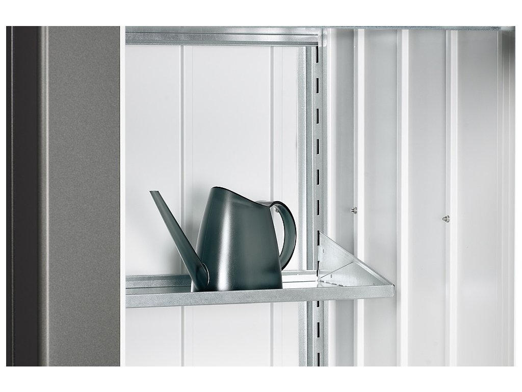 Nízká mělká zahradní skříňka Biohort Julia M má po celém svém obvodu profilované ocelové plechy ošetřené žárovým zinkem a polyamidovým vypalovaným lakem. Hladké dveře s panty vpravo dávají skříňce modernější design. Vnitřní šedo-bílé stěny zvyšují prosvětlení skříně, což oceníte při slabším světle. Odvětrávací systém zajišťuje dobrou cirkulaci vzduchu v jakémkoliv ročním období a minimalizuje možnost poškození věcí plísněmi. Jednokřídlová dvířka mají dvoucestný uzamykací mechanismus s cylindrickým zámkem zabudovaným v rukojeti ve tvaru T. Na vnitřní straně dvířek je umístěný organizér pro zavěšení nářadí nebo grilovacího náčiní. Snadné otevírání dvířek zajišťuje tlaková plynová pružina umístěná na pravém dveřním křídle. Na vnitřní straně dvířek je umístěný organizér pro zavěšení nářadí nebo grilovacího náčiní. Skříň má svoji vlastní podlahu s polystyrenem na spodní straně. Možnost vyrovnat skříň vyrovnávacími otočnými podložkami.
