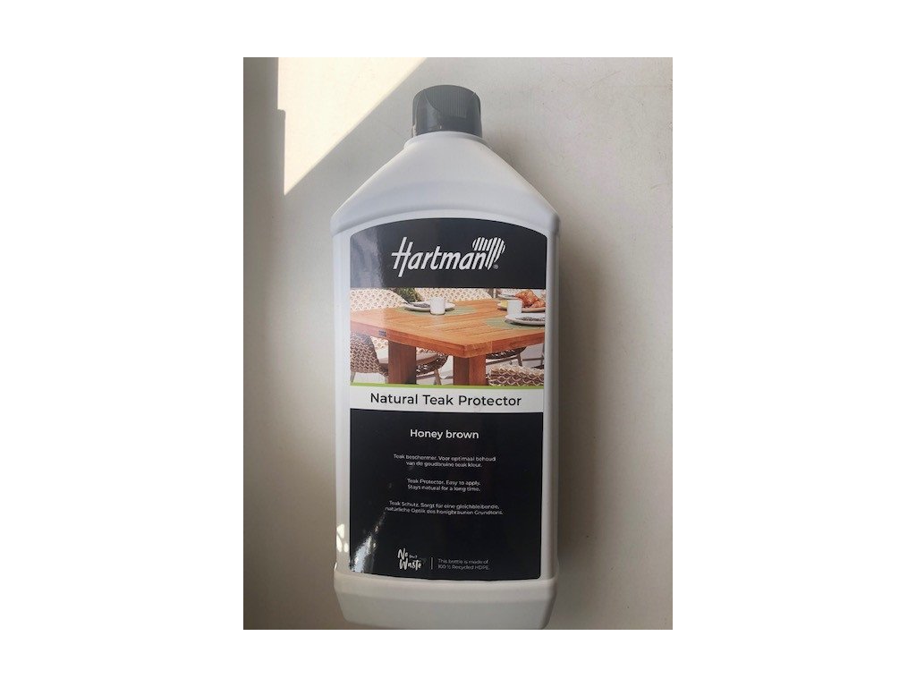 Vyčistěte svůj teakový nábytek přípravkem Hartman Teak Cleaner. Poté jej ošetřete Hartman Teak Protector (před aplikací chrániče se ujistěte, že je teak důkladně suchý). Teak je přírodní produkt, což znamená, že vlasové praskliny nebo povrchové praskliny jsou vlastní materiálu a neovlivňují jeho životnost. Tento chránič zachovává přirozenou barvu dřeva. Doporučuje se jeho aplikace jedenkrát ročně. Tak jako každý jiný zdroj, teak reaguje na povětrnostní vlivy. Drobné trhlinky, které se mohou objevit, jsou výsledkem tohoto procesu. Toto nemá žádný vliv na kvalitu výrobku.