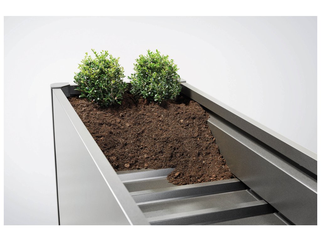 Zvýšené truhlíky na květiny má po celém svém obvodu dvojité oplechování. Vnitřní profilované a vnější hladké ocelové plechy jsou ošetřené žárovým zinkem a polyamidovým vypalovaným lakem. Díky této dvojité vrstvě se truhlíky nepřehřívají a redukuje se tím odpařování vody. Do truhlíku je možné zavést zavlažovací systém skrz otvory na spodní straně bočních stěn. Zvýšený truhlík je vybaven nastavitelnou mezipodlážkou, která odděluje náplň od podloží. Jelikož truhlíky mají různou výšku, je možné mezipodlážku výškově nastavit do požadované polohy dle drážek daných výrobcem. Na výplň můžete zakoupit Biohort vložky do zvýšených truhlíků nebo nopovou fólii. Truhlíkový systém Biohort DaVinci včetně mřížoví i zástěn sestavíte podle návodu snadno a rychle!