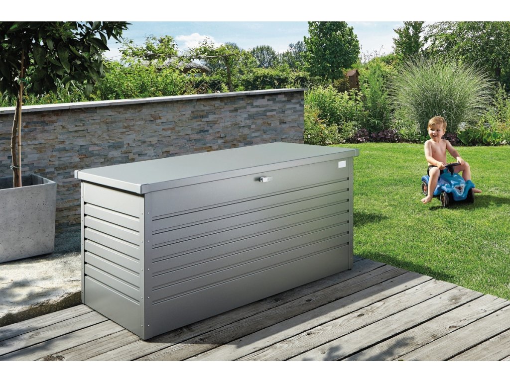 Zahradní úložný box Biohort FreizeitBox / LeisureTimeBox na polstry, hračky a nářadí má po celém svém obvodu prolisované ocelové plechy ošetřené žárovým zinkem a polyamidovým vypalovaným lakem. Otevírání a zavírání víka boxu funguje poloautomaticky pomocí plynové pružiny. Víko je zajištěno proti náhodným zlodějům dvoucestným uzamykacím mechanismem s integrovaným cylindrickým zámkem s T-rukojetí. Vnitřní šedo-bílé stěny zvyšují prosvětlení boxu, což oceníte při slabším světle. Integrovaný odvětrávací systém zajišťuje dobrou cirkulaci vzduchu v jakémkoliv ročním období a minimalizuje možnost poškození věcí plísněmi. Má osobní zkušenost s boxem je vynikající a mohu ho doporučit!